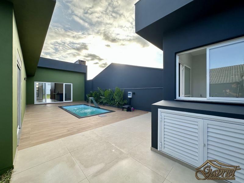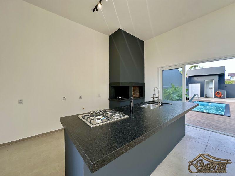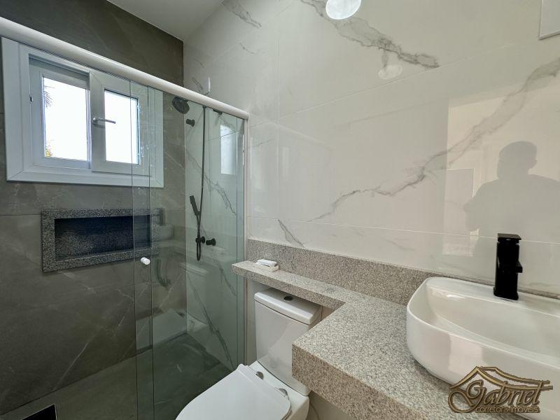 Casa em alvenaria com arquitetura contemporânea, projetada para oferecer conforto, funcionalidade e lazer. O imóvel conta com 3 suítes, todas mobiliadas e equipadas com bancada em granito, box em vidro, louças e chuveiros com ducha.