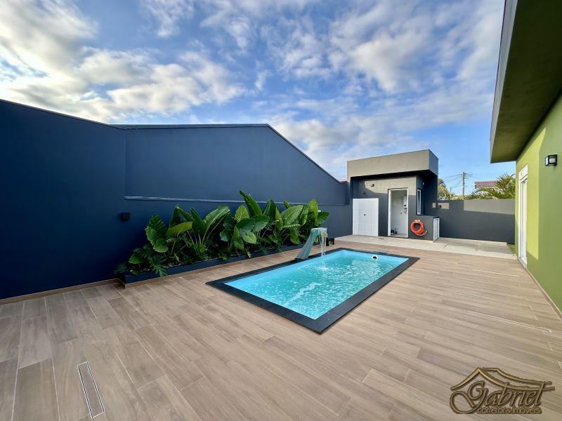 A área social possui ampla abertura para o espaço externo, onde se encontra a piscina com aquecimento, perfeita para aproveitar em todas as estações do ano. Nos fundos, o imóvel dispõe de área de serviço e lavabo.