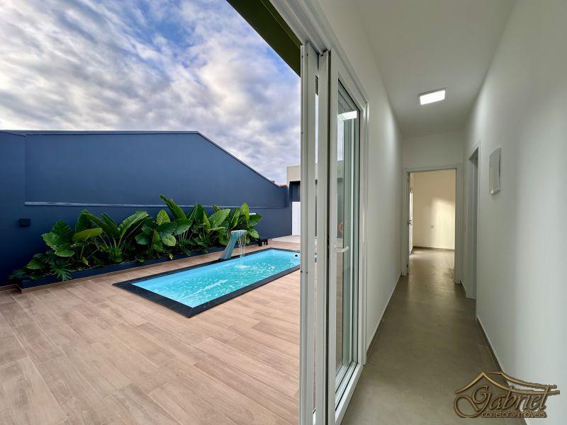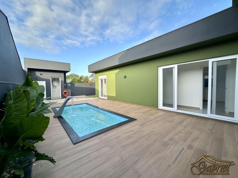 Casa em alvenaria com arquitetura contemporânea, projetada para oferecer conforto, funcionalidade e lazer. O imóvel conta com 3 suítes, todas mobiliadas e equipadas com bancada em granito, box em vidro, louças e chuveiros com ducha.